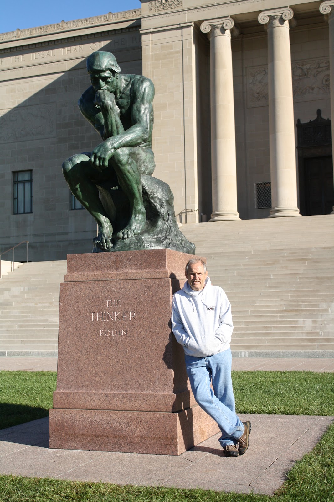"This can't be the only original," said Andy about Rodin's The Thinker, as he leaned against the famous work. It wasn't. The sign said #1008.